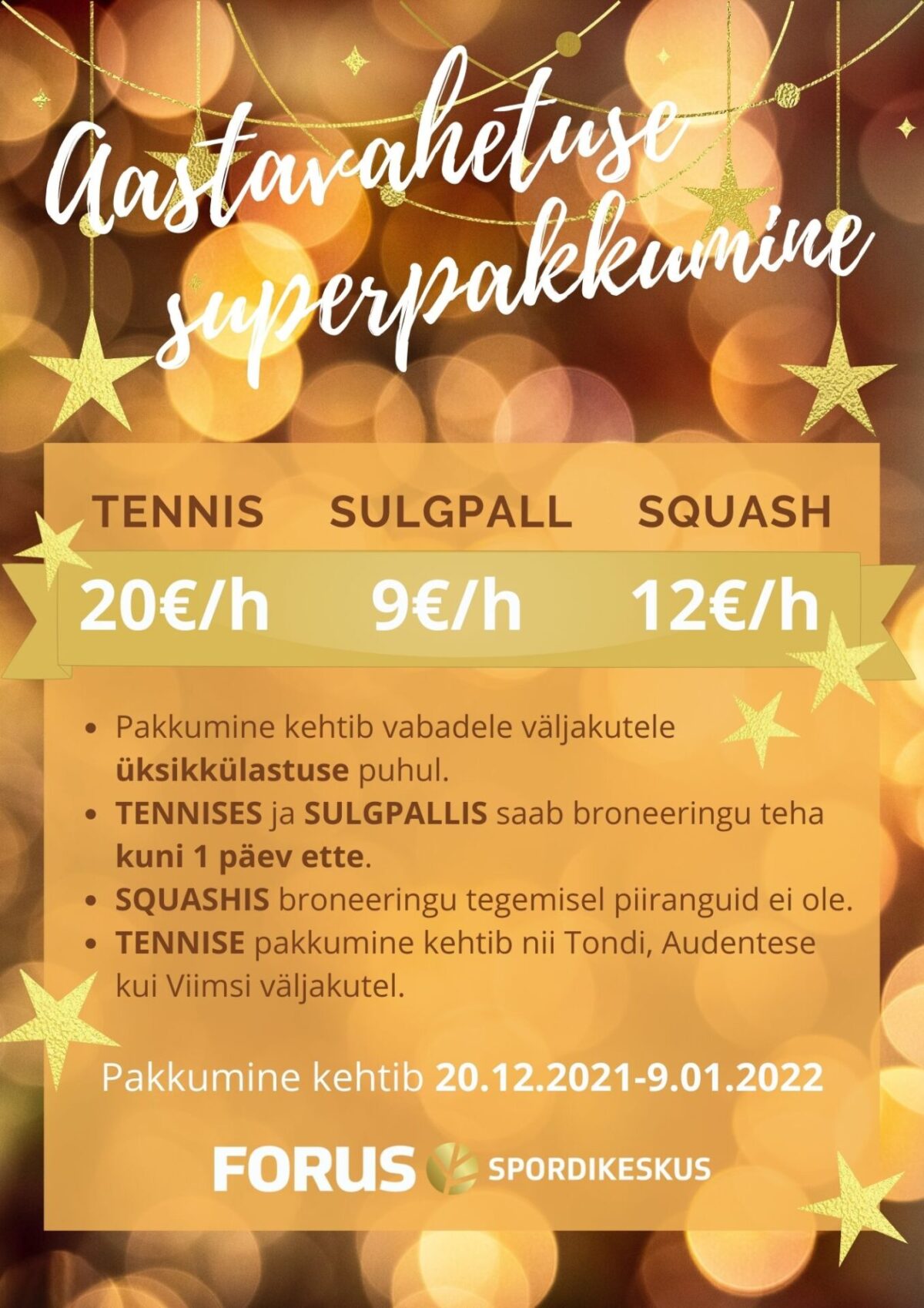 Aastavahetuse pakkumine reketialadel