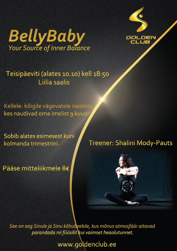 02.10.2017BellyBaby kursus on mõeldud kõigile beebiootel naistele, kes soovivad oma rasedust nautida, tundes ennast 9 kuu vältel enesekindla, terve, särava ja seksikana! See on aeg Sinule ja Sinu kõhubeebile, kus mõnus atmosfäär aitab Sul parandada nii oma füüsilist kui vaimset heaolutunnet.