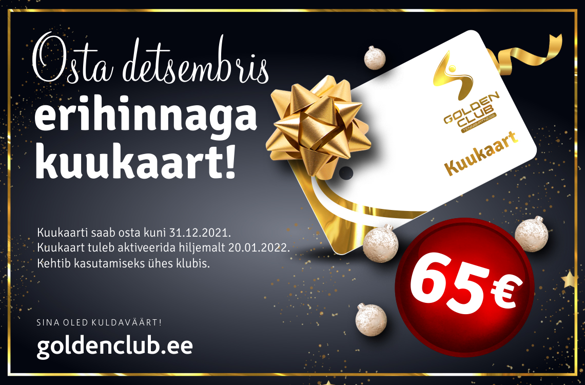Sportliku eluviisiga alustamiseks ei pea tingimata uut aastat ootama, tule juba täna! Detsembri lõpuni saad kuukaardi soetada klienditeenindusletist erihinnaga 65€.