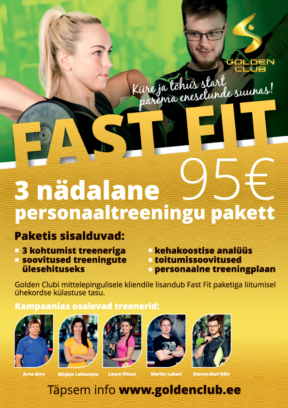 Kirjuta oma soovist liituda Fast Fit paketiga ning treenerieelistusest aadressile fitness@goldenclub.ee