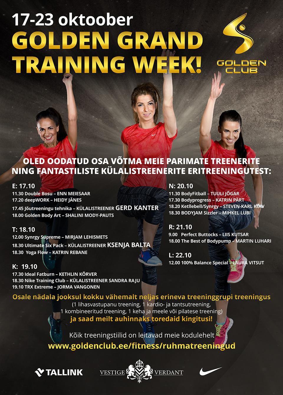 Olete oodatud osa võtma meie suurepärastest eritreeningutest! Eritreeningutele saavad registreerida olenemata paketist kõik kliendid. Auhinnad tublidele osalejatele anname välja alates 27.10. Arvestusse lähevad kõik rühmatreeningud.