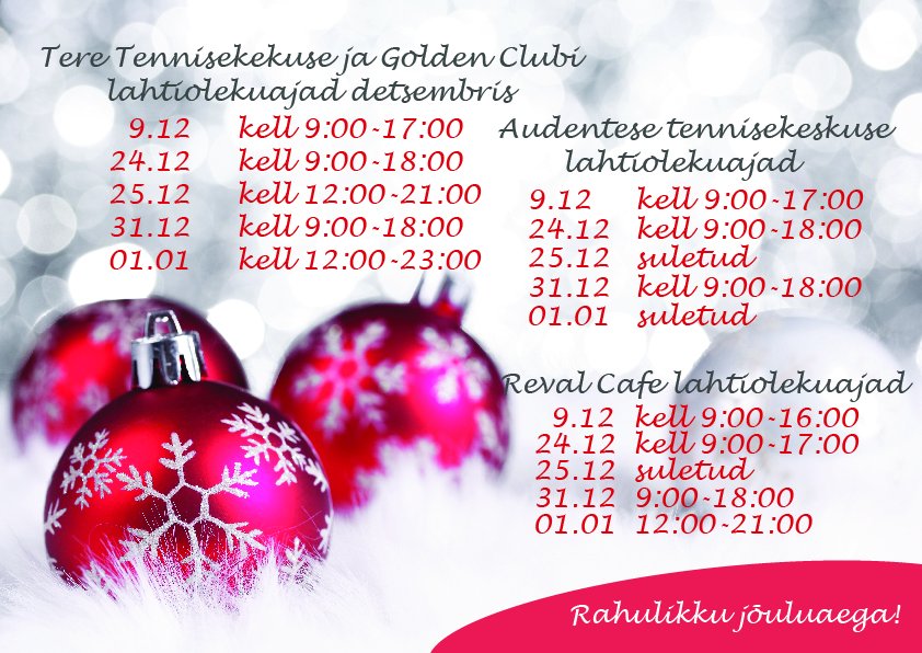 Keskuse lahtiolekuajad detsembrikuus