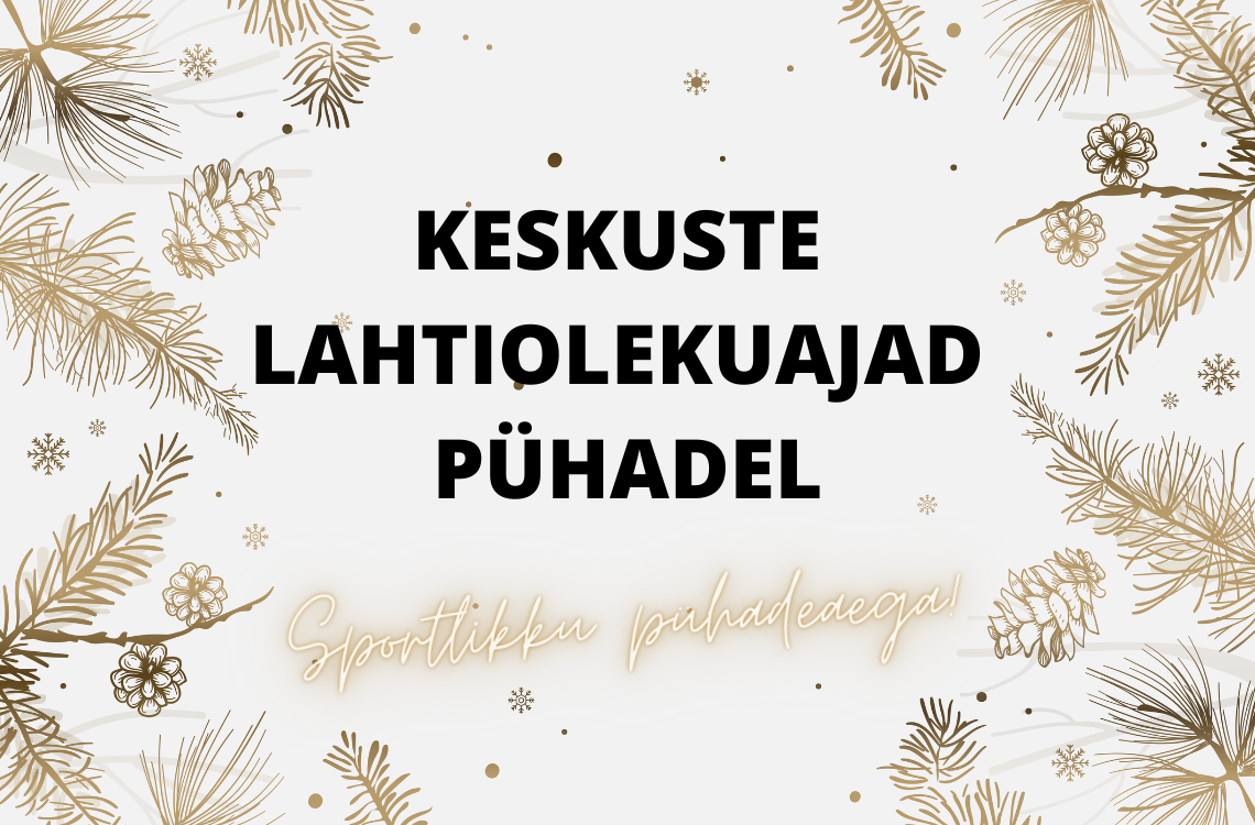 Detsember on käes ja jõulud ei ole enam kaugel. Kui teed pühadeplaane ja soovid ka treeningu sinna mahutada, siis siit leiad meie keskuste lahtiolekuajad jõulude ja aastavahetuse perioodil.