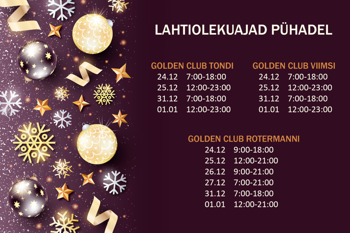 Klubide ja mängutubade lahtiolekuajad pühadel