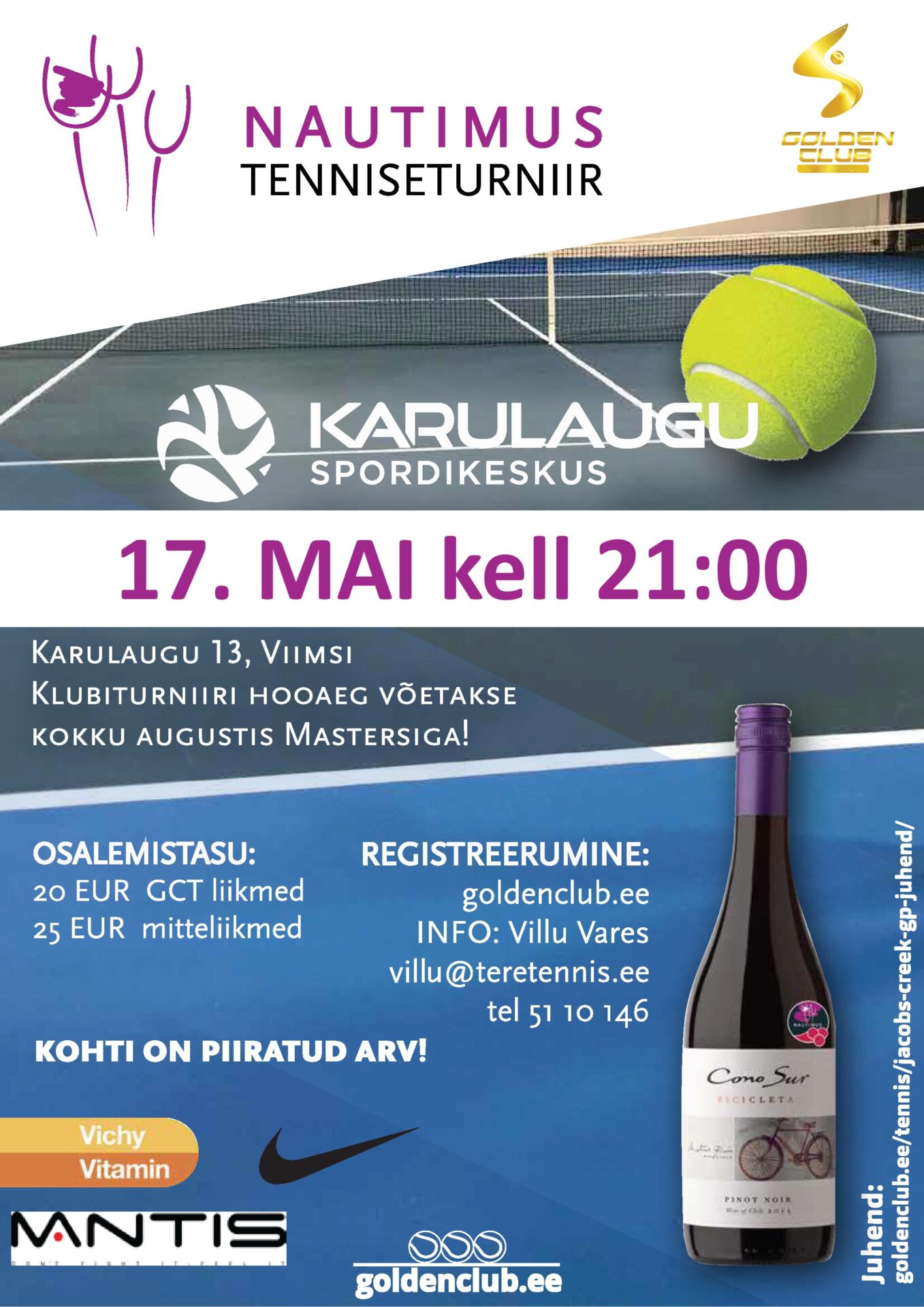 14.05.2019Sisehooaja viimane Nautimuse tenniseturniir toimub 17. mail algusega kell 21:00 Karulaugu Spordikeskuses.