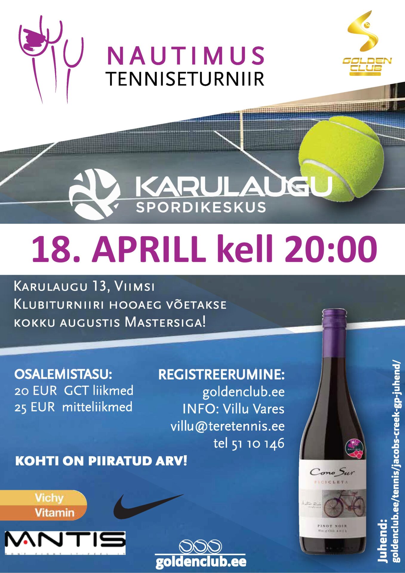 11.04.2019Tähelepanu kõik Nautijad! Nautimuse kolmas tenniseturniir toimub 18. aprillil algusega kell 20:00 Karulaugu Spordikeskuses.