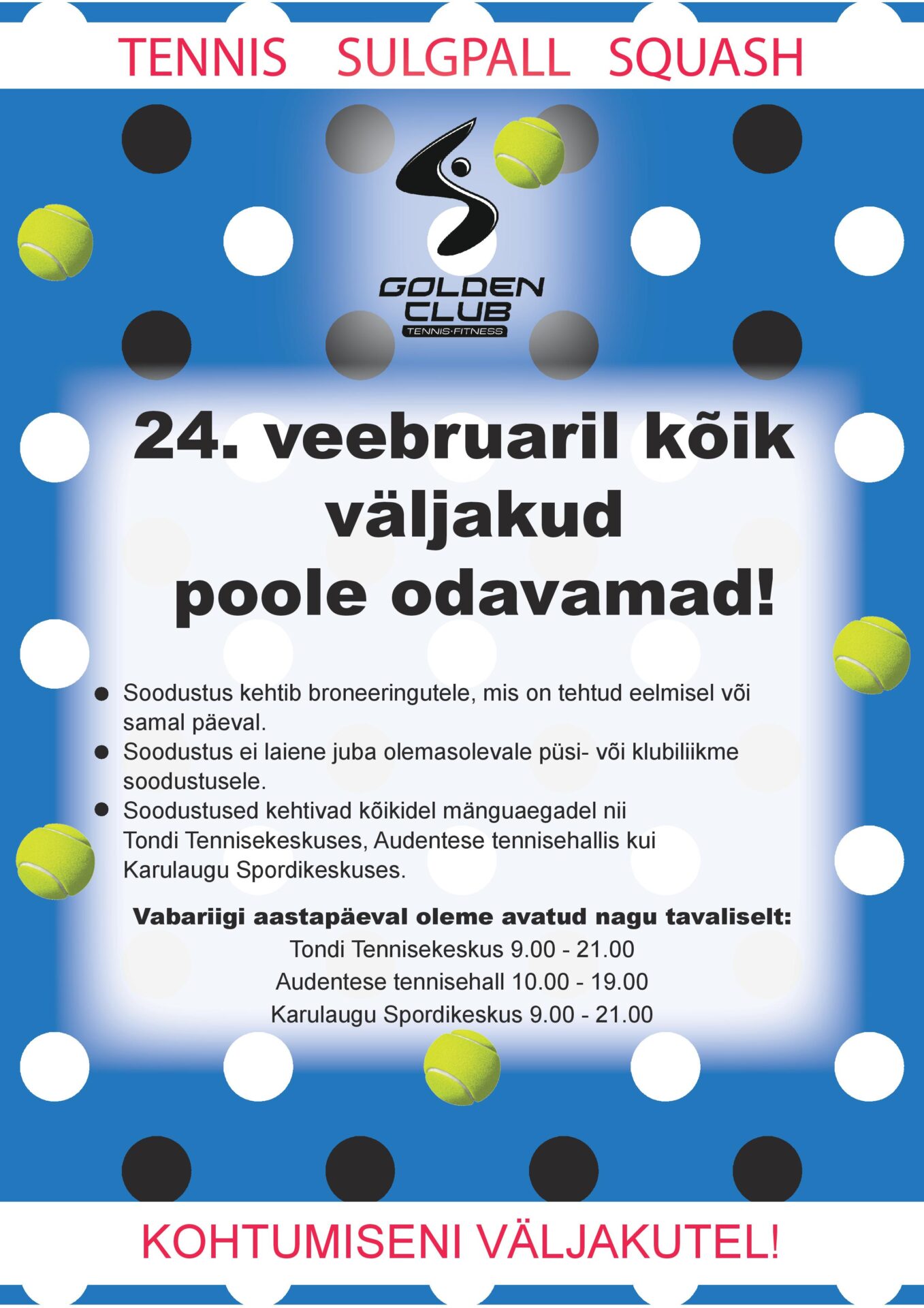 Reketialadel 24. veebruaril pidupäevahinnad