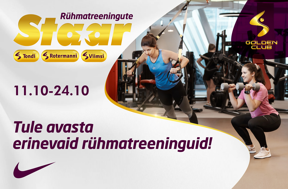 Iga klubi kõige aktiivsem rühmatreeningutes osaleja saab auhinnaks ülivinge stardipaketi: Nike treeningtossud, Golden Clubi spordikoti ja joogipudeli.