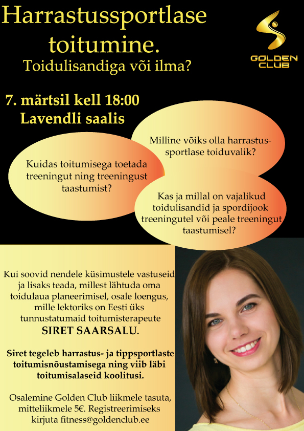 Siret Saarsalu loeng “Harrastussportlase toitumine. Toidulisandiga või ilma?”