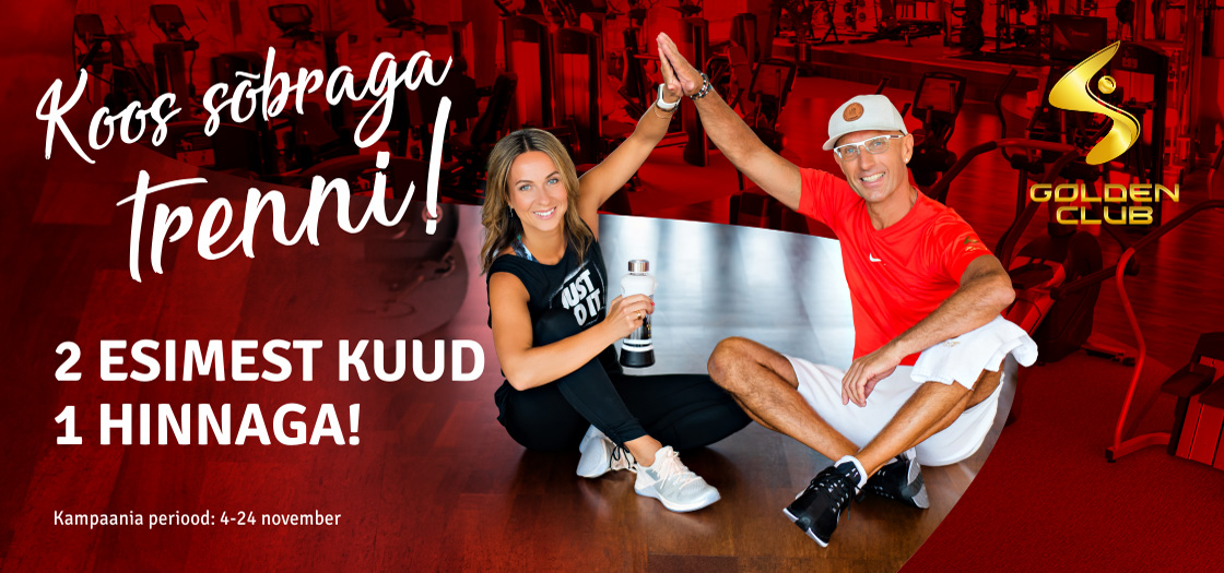 Hea Lifestyle või Fresh paketi omanik. Kutsu oma sõber, kes ei ole veel Golden Clubi liige, meile trenni ning saate mõlemad 2 esimest kuud 1 hinnaga. Kampaania kestab 4-24 november ning detsembri ja jaanuari kuutasud tulevad poole väiksemad. Soodustus arvestatakse paketi täishinnast.