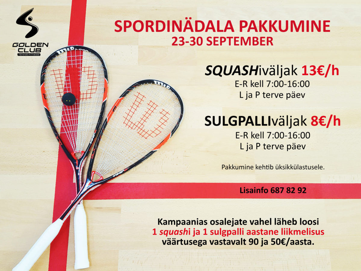 Squashi ja sulgpalli spordinädala pakkumised