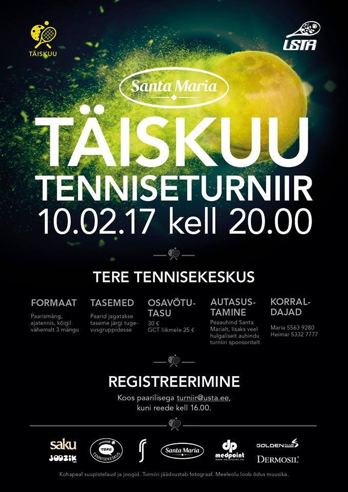 Turniirid hakkavad toimuma iga täiskuu, esimene etapp on kohe kohal! Ära sellest kindlasti ilma jää, registreeri oma paar aadressil turniir@usta.ee. ( Facebooki leht: SIIN) Ära registreeri tugevamat paari kui M 1B liiga + M 1B liiga. Paarid jagame tugevuse järgi gruppidesse.