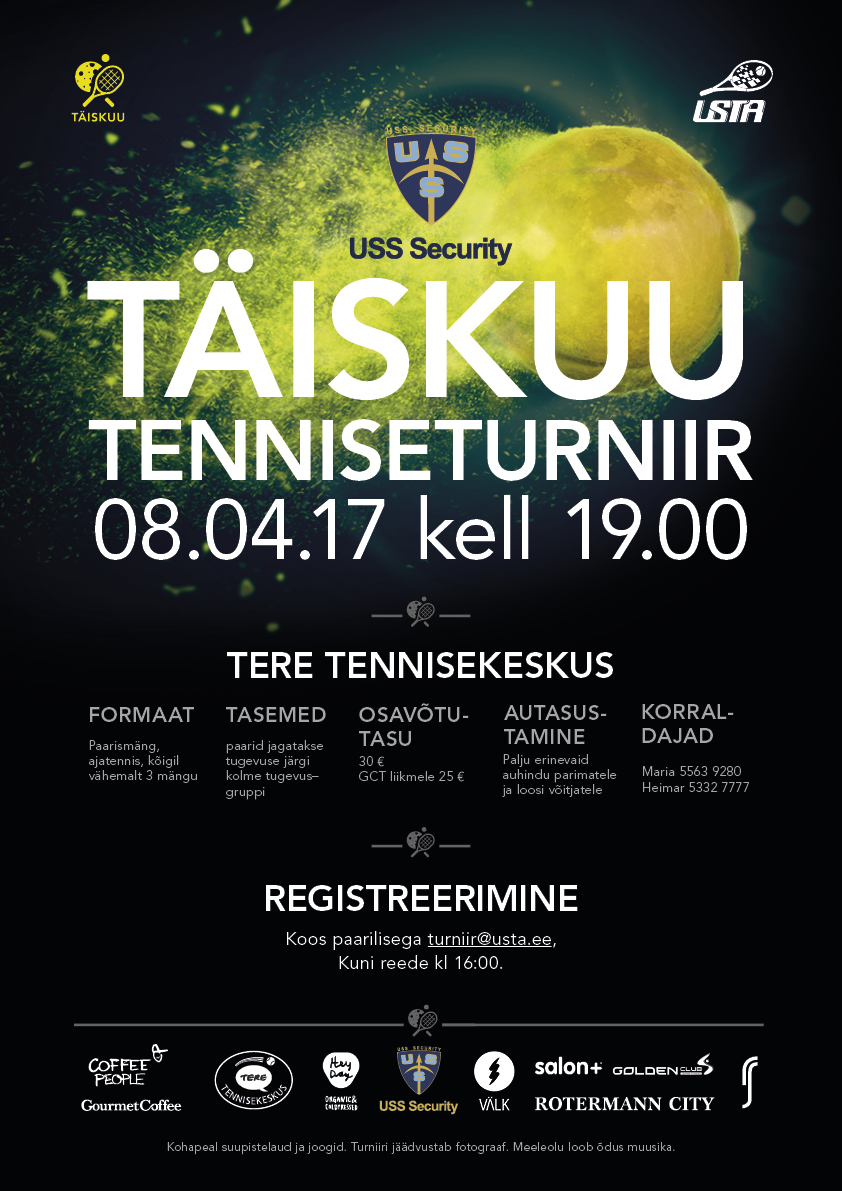 Turniirid hakkavad toimuma iga täiskuu, esimene etapp on kohe kohal! Ära sellest kindlasti ilma jää, registreeri oma paar aadressil turniir@usta.ee. ( Facebooki leht: SIIN) Ära registreeri tugevamat paari kui M 1B liiga + M 2B liiga. Paarid jagame tugevuse järgi gruppidesse.
