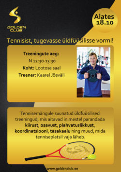 Alates 18. oktoobrist hakkab Tondil, fitnessklubis Golden Club ühel nädalas toimuma tenniseharrastaja üldkehalist vormi parandav treening, mida viib läbi treener Kaarel Jõeväli.