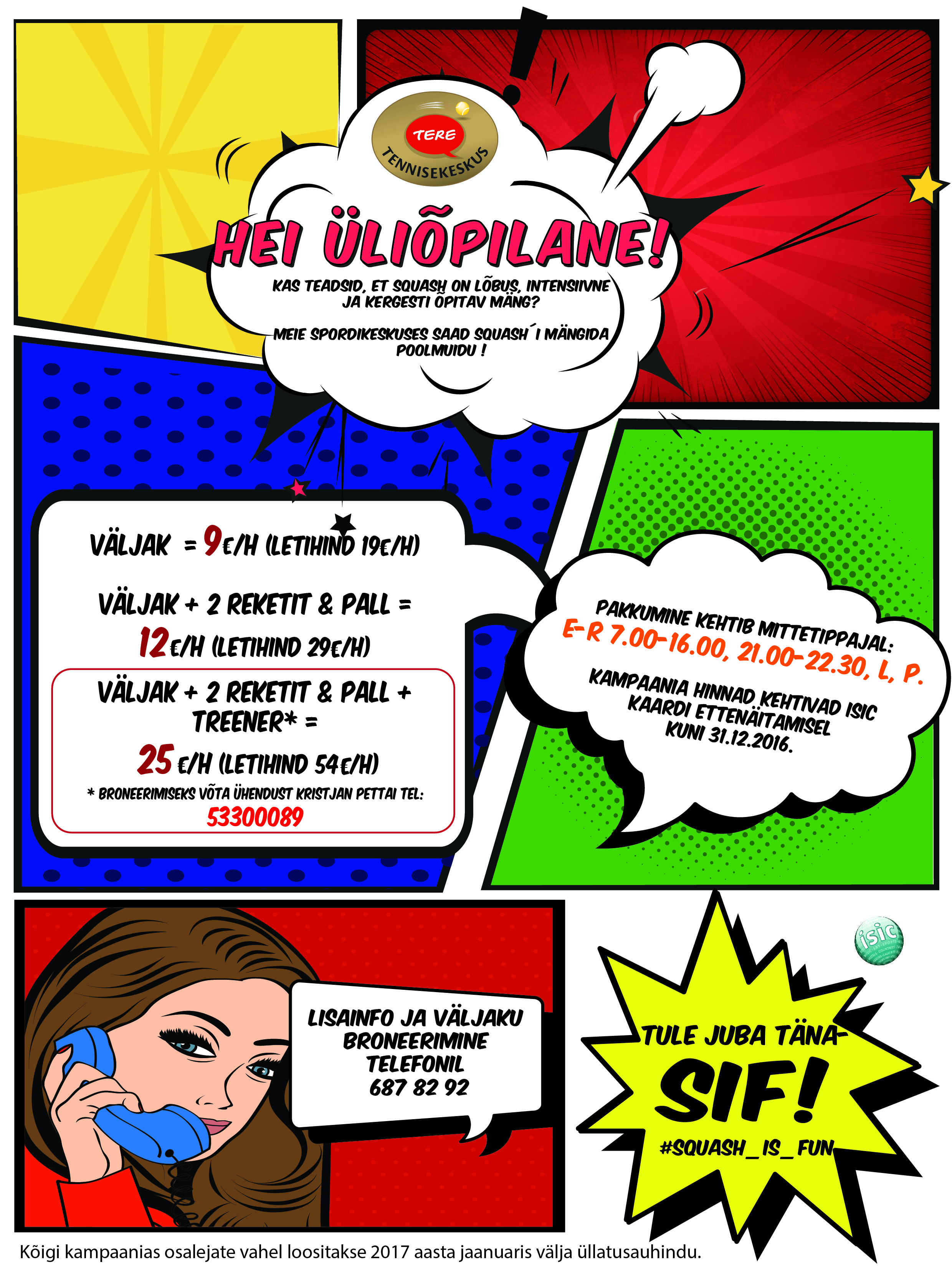 Tudeng, ära tuku, tule squash´i mängima! Kaasa sõber ja ISIC kaart :)!