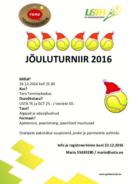 Tule jõuluturniirile 26. detsembril kell 15.00!